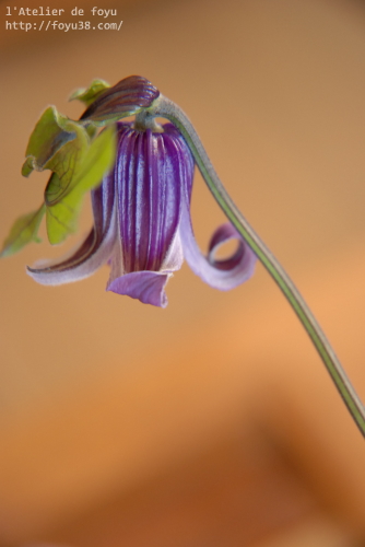 そのフランネルとクレマチスを一緒に活けました。紫がかった蒼と白が相性良しです。