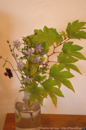 【イブニングスター+フジバカマ(白)+木苺の葉】