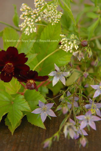 【木苺の葉+イブニングスター+チョコレートコスモス】