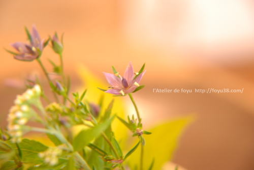 【イブニングスター+フジバカマ(白)+木苺の葉】
