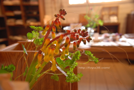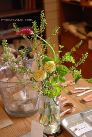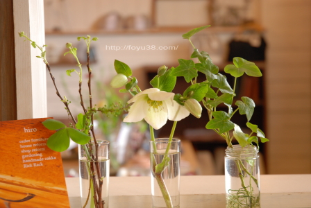 今回、前回の活け込みから日があいたためか、お花類がまったく残っていなくて。スタッフが(たぶんjunaさんだと思うけど)花壇からクリスマスローズを摘んで活けてくれてました。