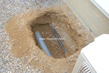今回は家の脇に植えよう計画なのでせっせと掘っていたところ、深さ50cmに届いてないような気がしますが配管が出て来てしまったのでここまでとしました。