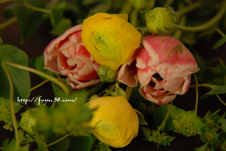 いつもの斎花さんの店先も、明るい色目のチューリップ、ラナンキュラス、アネモネ・・・と沢山の春の花が並んでいて。悩む~~~!と口にしつつ今年初のお花を選んできました。