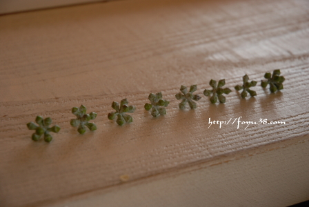 外した実や葉っぱを並べるくせがあるんですが、これほどかわいいのもめずらしい。
