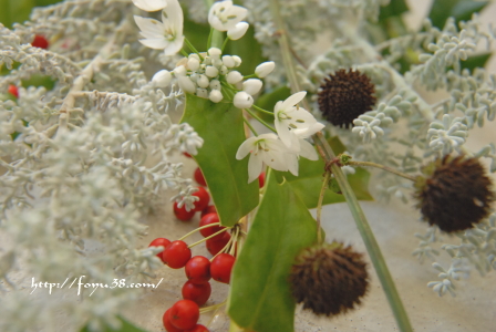 ところが、家に持ち帰ったところ、ヤドリギの水の上がりが良すぎるのか、はたまたそういうものなのかわからないのだけど、ぽろぽろと実も枝も落ちてしまって。