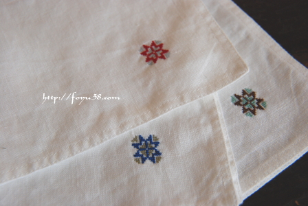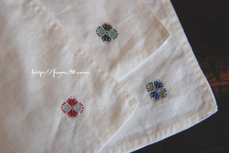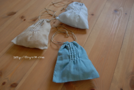 そのリネンウールを2色使って作りました。そしてはぎ合わせ部分にフランス製のコットンレースを付けました。