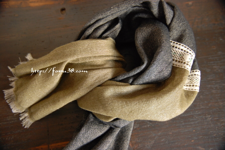 渋い色合いのリネンウールの合間からコットンレースがちらり。どことなくフォークロアっぽくて気に入っています。レースもこのくらいなら甘すぎなくていいなと思います。