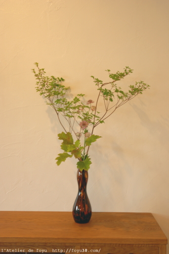 5月は白い花が房咲きにたわわに咲き、夏は緑濃く影を落とし、秋は色づいた紅い実に小鳥がやってきて、クリスマスにはその実でリースを作ろうと・・企んでるわけです。むふふ。