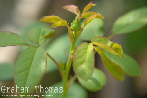 このバラはようやく先端が割れて花色を覗かせ始めたところでした