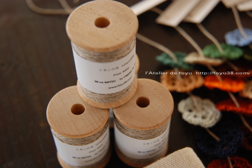 使いやすい太さのリネンの糸を木製糸巻きに巻きました。