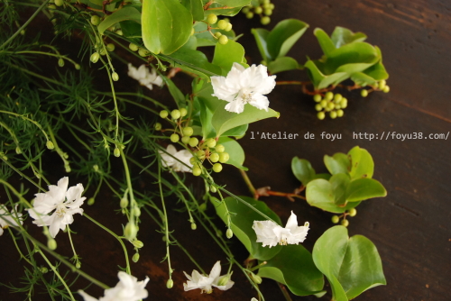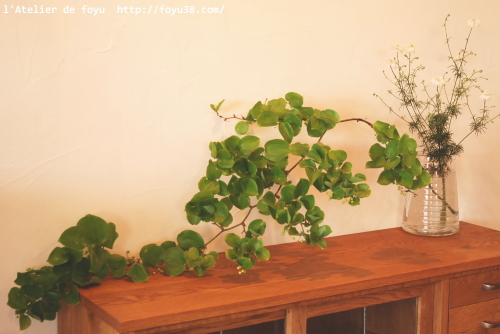 ・・朝、活け込み準備をしながら撮ったので・・お花モチーフ単品の写真を撮り忘れました・・